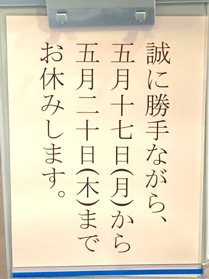 5月17日(月)〜5月20日(木)までお休みいたします。