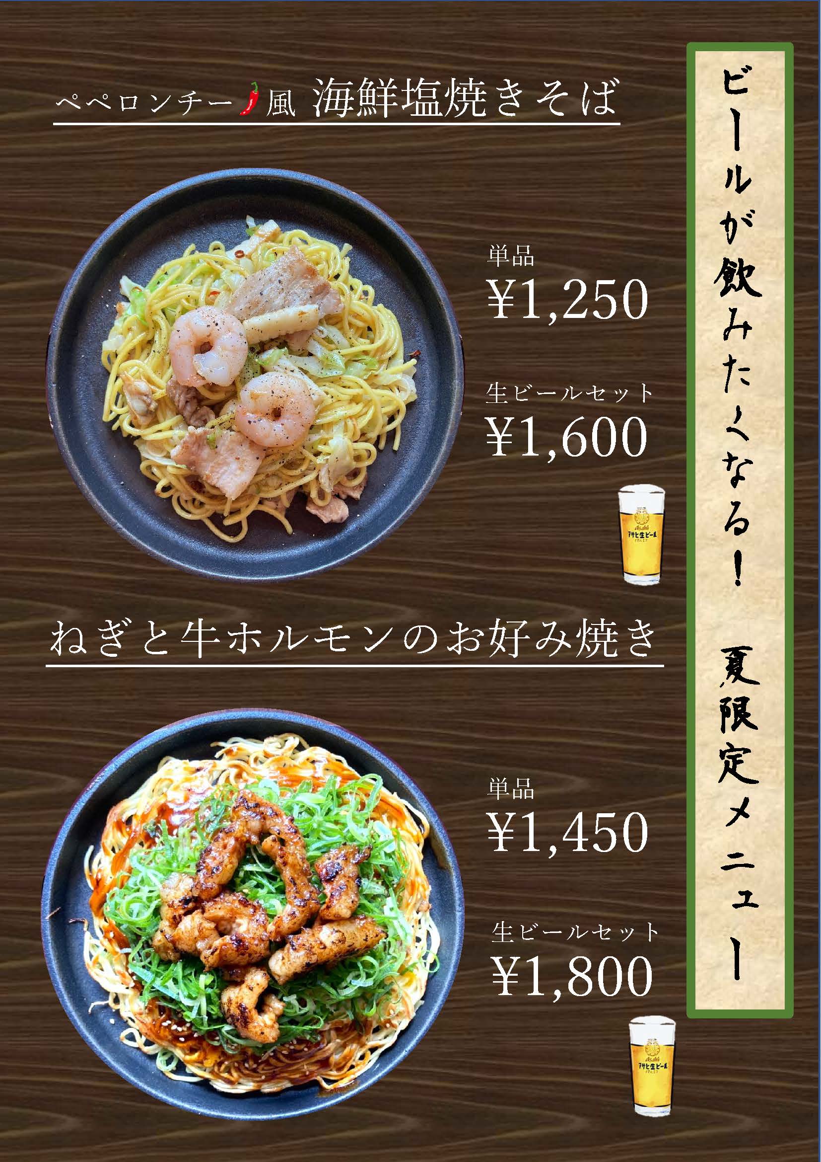 どちらの限定メニューも生ビールとの相性抜群!!特別なセット価格をご用意いたしました!(ビールセット通常400円が350円!!!)