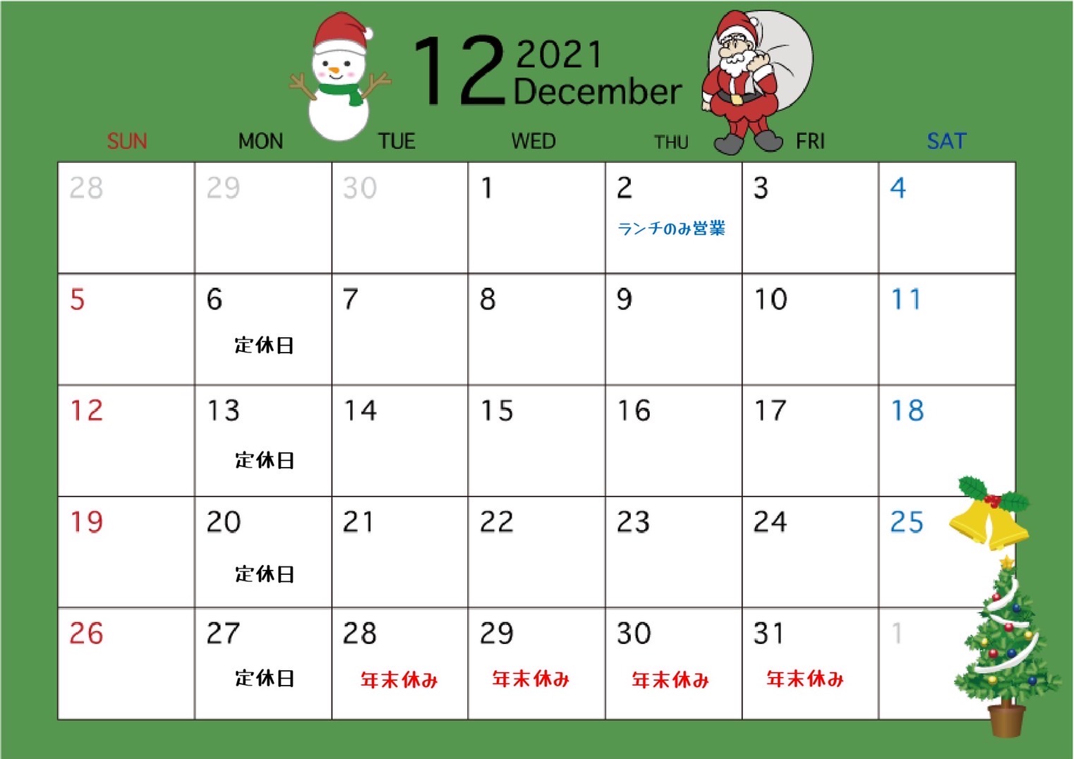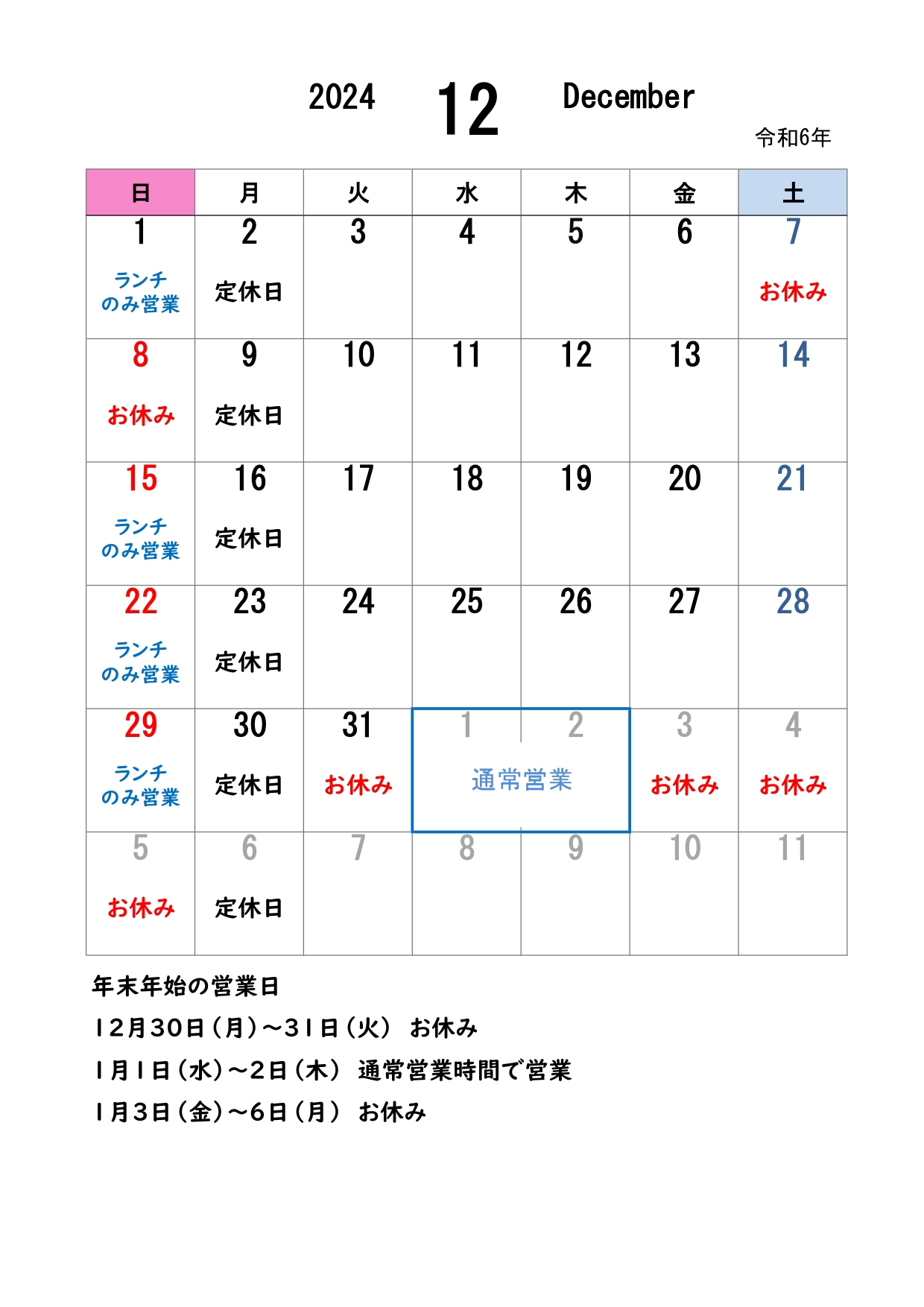 ~12月28日(土)通常営業