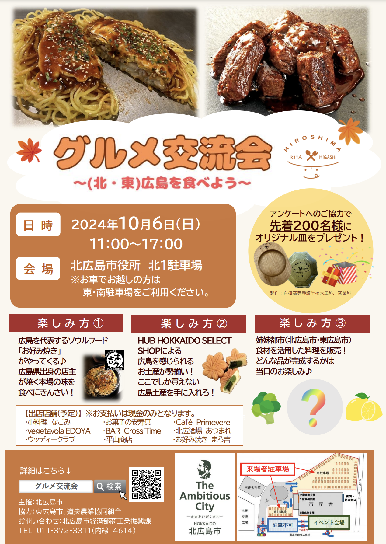 姉妹都市である広島県東広島市と北海道北広島市の美味しいものを食べよう!というイベントです。
