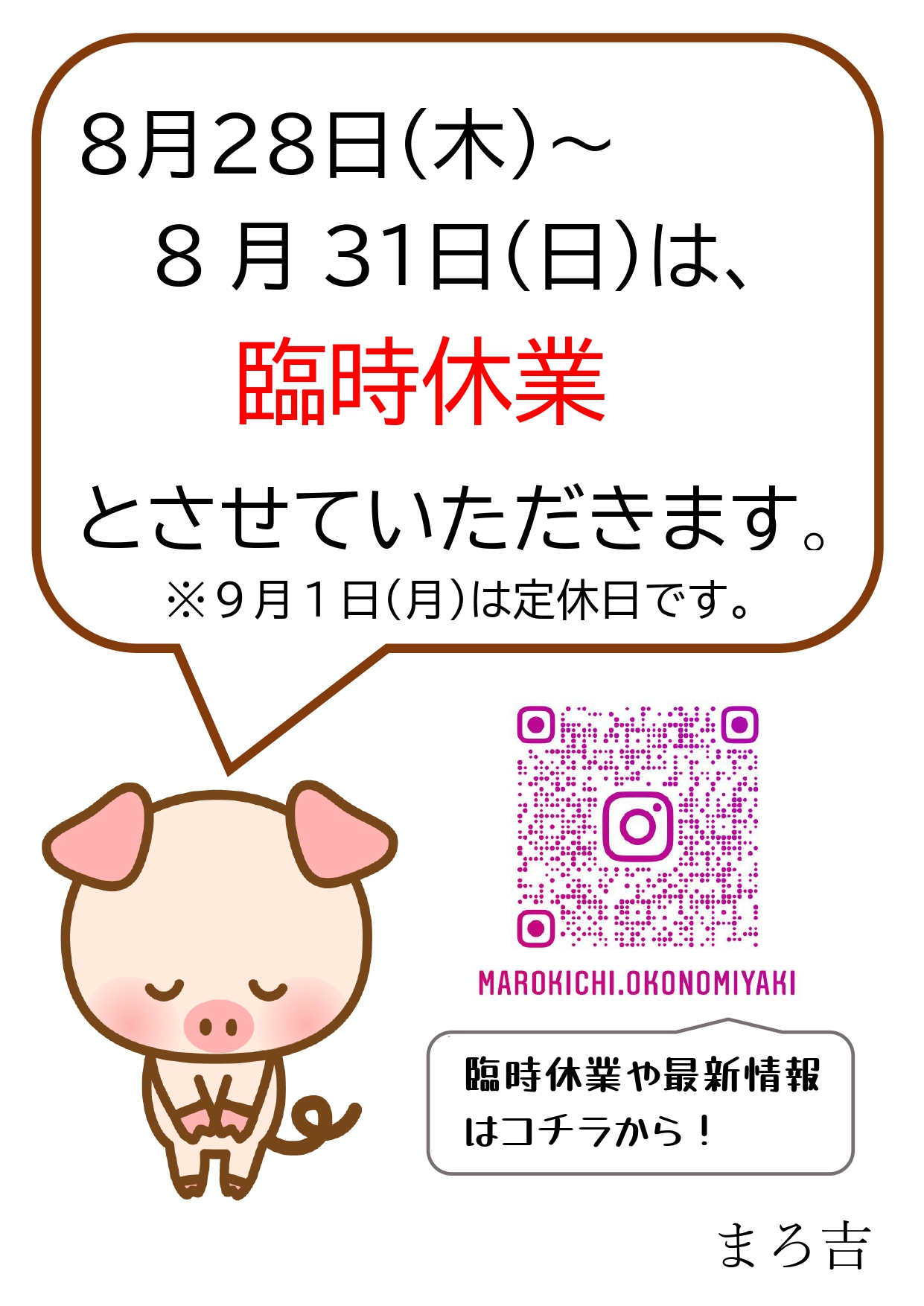 いつもまろ吉をご利用いただきありがとうございます。 誠に勝手ながら、